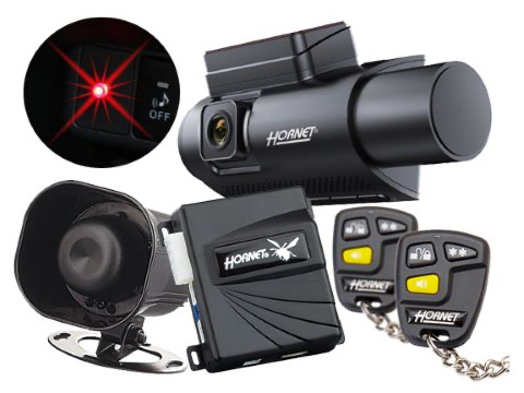 犯罪抑止効果が期待できるHORNETロゴ入り防犯ステッカー(内貼り)を2枚付属。