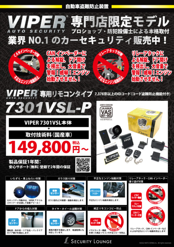 新保安基準対応VIPER! 純正キーレス連動モデル