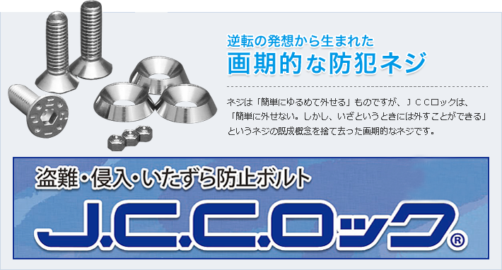 JCCロックは優良防犯器具認定の特許防犯ネジです。